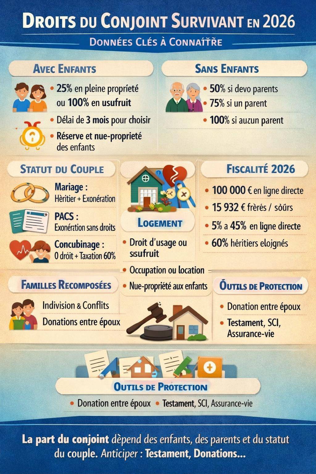 - Cadre légal 2026 : place du conjoint survivant dans la succession