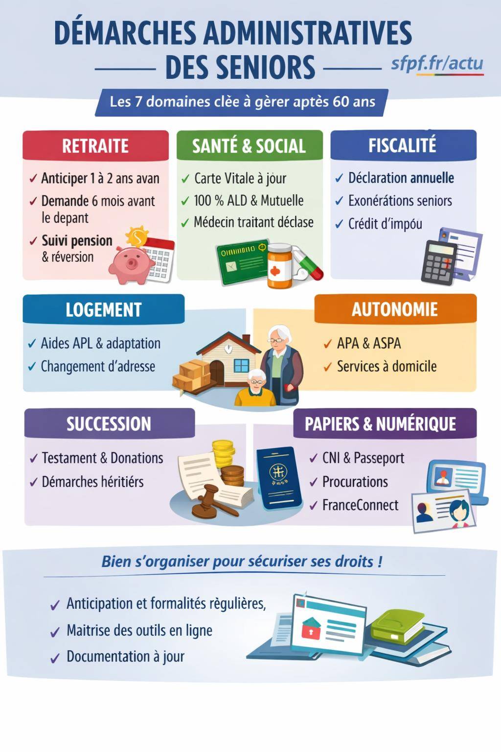 À partir de 60 ans, le rapport à l’administration évolue. Les enjeux se concentrent autour de la retraite, de la protection sociale, de la santé, du logement, mais aussi de la transmission du patrimoine. Chaque démarche influence directement le niveau de vie, la sécurité juridique et la tranquillité du quotidien.