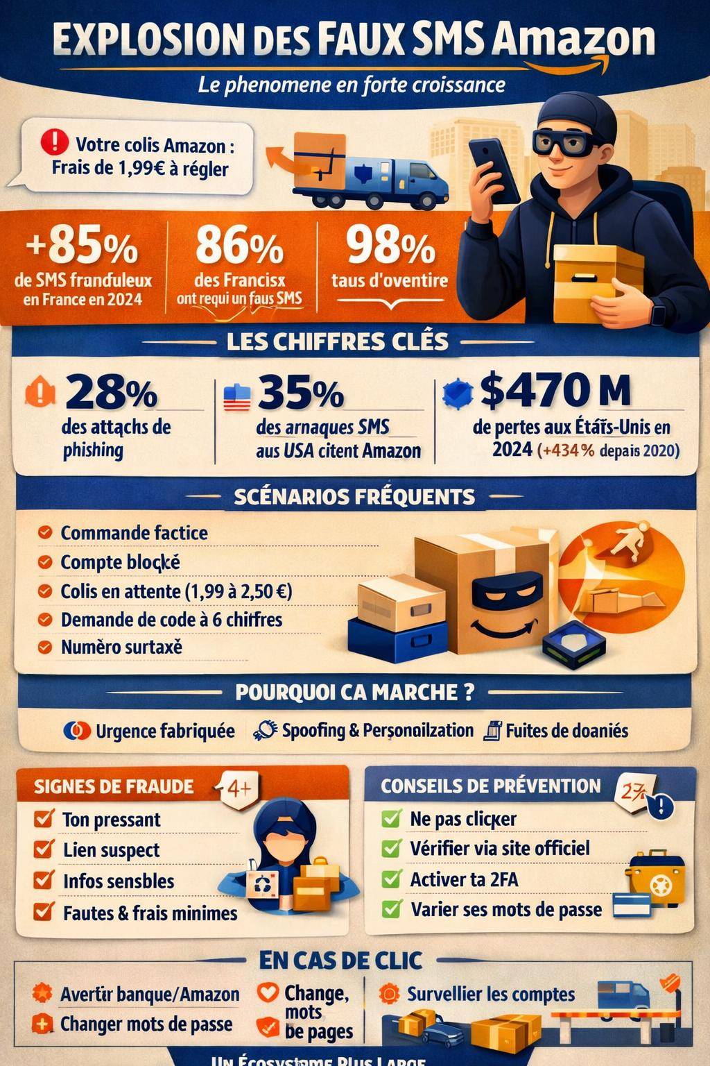 Un article spécialisé sur les faux SMS de livraison de colis offre un panorama des variantes courantes (transporteurs, services publics, péages) : faux SMS de livraison de colis. Les schémas décrits y recoupent largement ce qui se pratique autour d’Amazon.