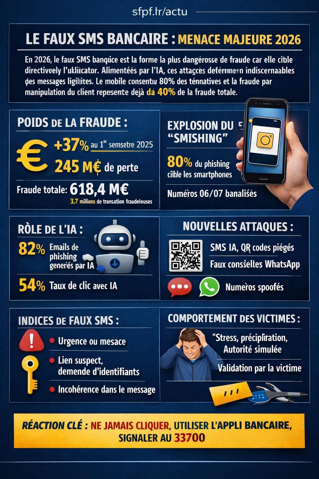 | Signes d’un faux SMS bancaire 📱 | Messages urgents, fautes, liens suspects ou demandes d’informations personnelles. |