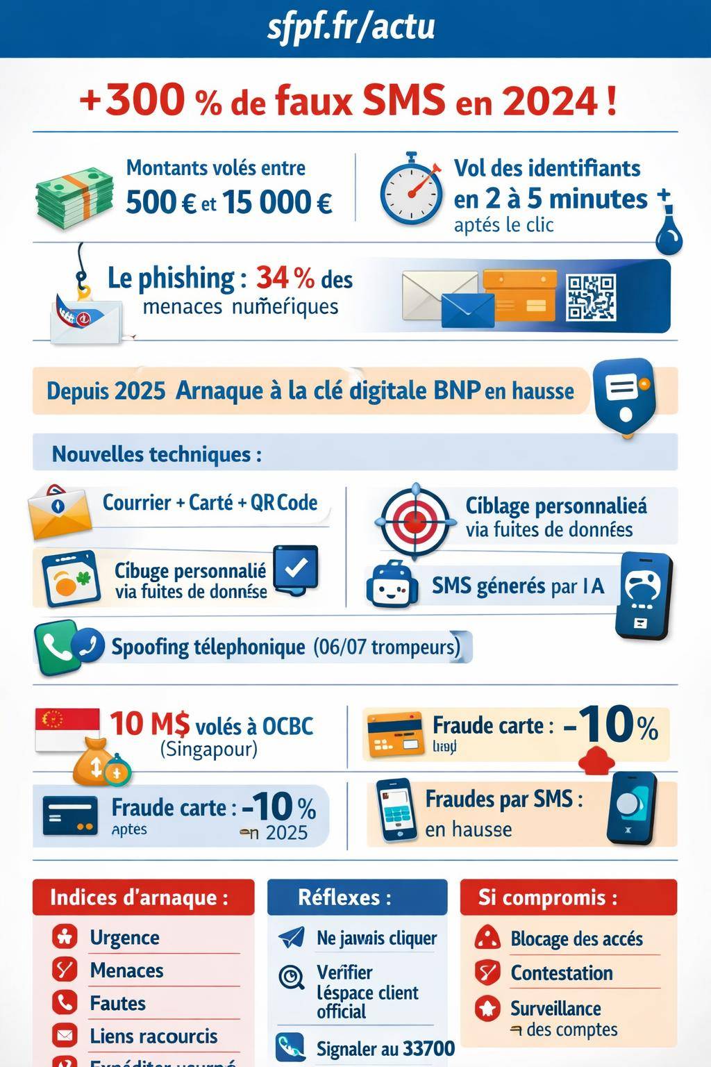 ConseilsFaux SMS Caisse d’Épargne : les signaux d’alerteLe cas de la banque OCBC à Singapour illustre ce basculement : en 2022, une campagne de faux SMS a entraîné plus de 10 millions de dollars de pertes pour environ 790 victimes. En Europe, le malware Flubot a également montré en 2021–2022 à quelle vitesse un simple SMS malveillant peut se diffuser.