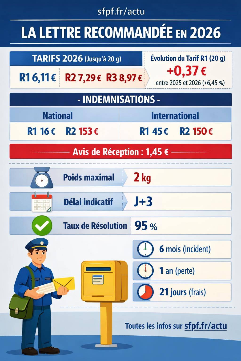 - Tarifs de la lettre recommandée en 2026 : R1, R2, R3 et options