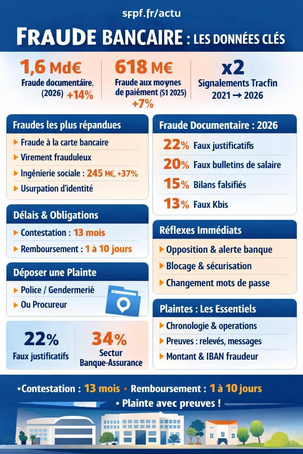 Les secteurs les plus exposés restent la banque‑assurance (34 %) et l’immobilier / location (24 %). Ces données éclairent la plainte : plus la fraude est structurée et documentée, plus les enquêteurs et le parquet comprennent le mode opératoire et identifient les responsabilités.