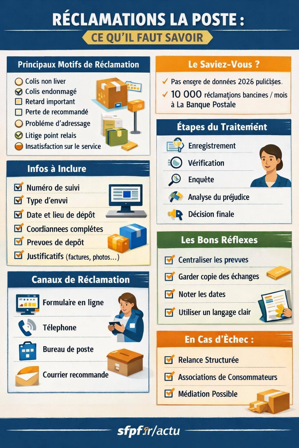 Une réclamation La Poste s’adresse à tous les usagers, particuliers comme professionnels, qui rencontrent un dysfonctionnement sur un service postal ou un produit associé. Ce recours vise à obtenir une réponse formelle, une explication, une correction de situation ou une indemnisation, selon le type de problème.