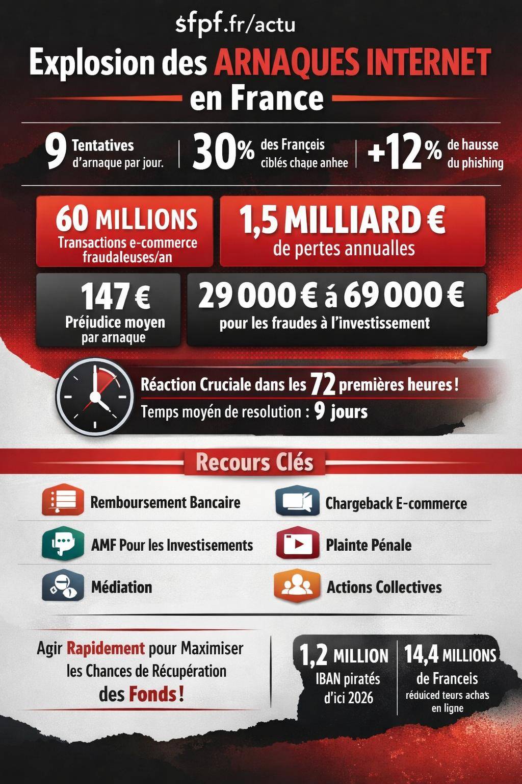 « Près de 38 % des personnes touchées par une arnaque internet déclarent avoir effectivement perdu de l’argent. La réaction juridique dans les premiers jours influence fortement les chances de récupérer une partie des fonds. »