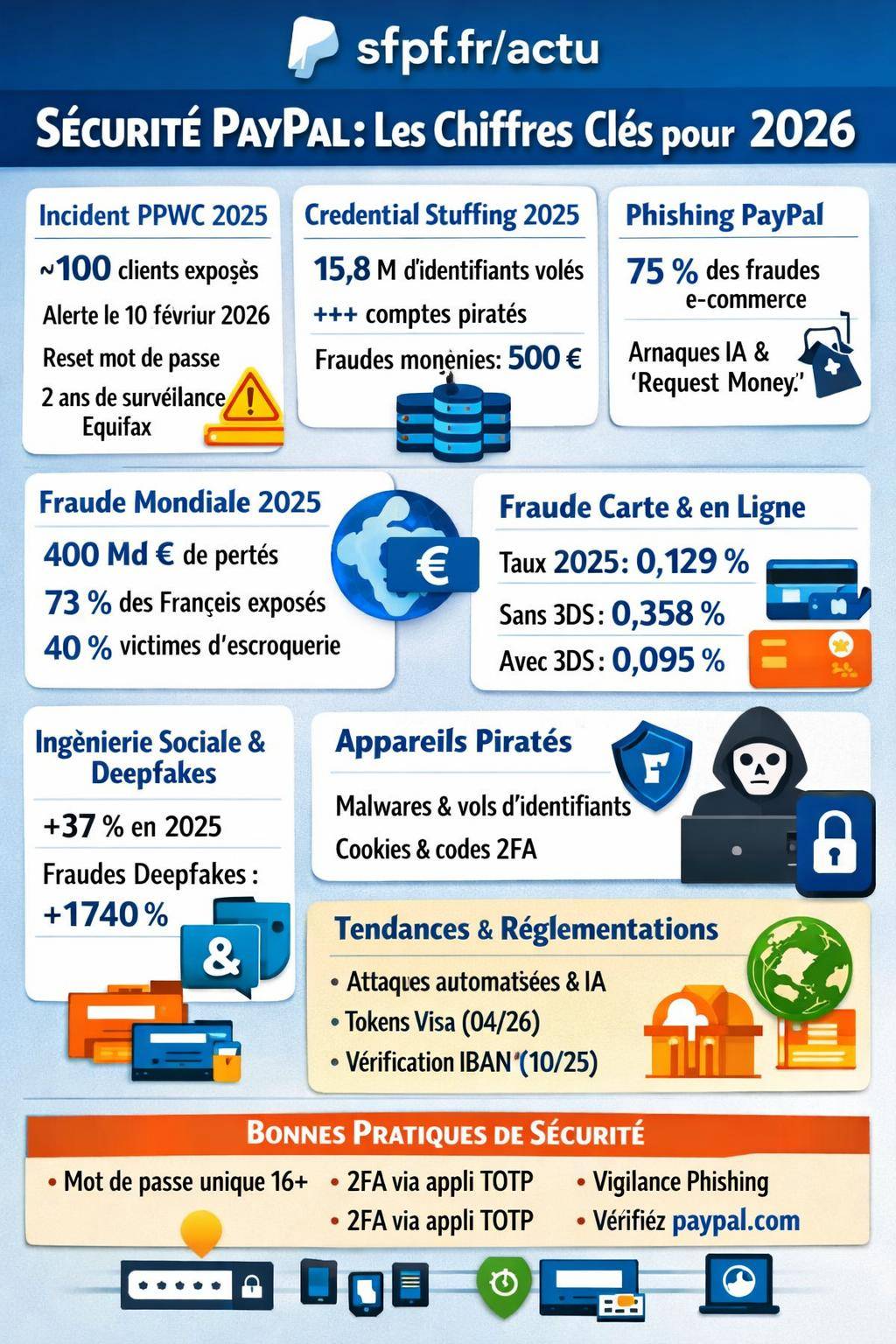 La notification officielle aux clients date du 10 février 2026. PayPal a alors imposé une réinitialisation obligatoire des mots de passe, remboursé les rares transactions non autorisées et proposé 2 ans de surveillance de crédit Equifax pour les personnes concernées (inscription avant le 30 juin 2026).
