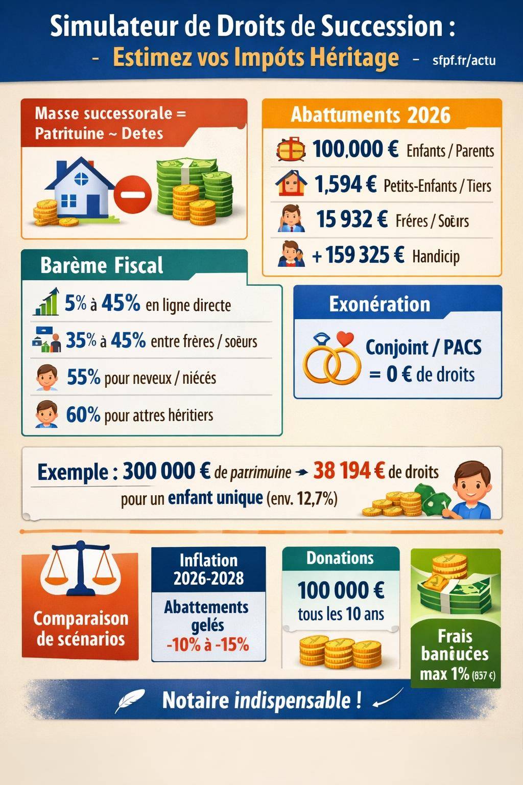 - Barèmes 2026 des droits de succession : les règles intégrées dans le simulateur
